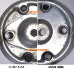 There is no visible difference on the outside, between a V-spring brake plate and a U-spring or coil spring brake plate, but inside there are three differences.
