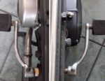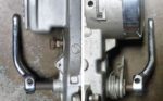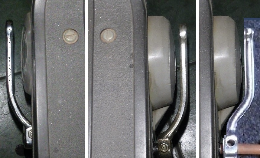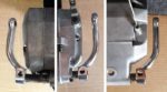 1. 521L, 521R Motobecane, 2. 521L bent inward. Shown here are the #4 style vintage French original pedal cranks on Motobecane Mobylette mopeds 1972-1980+. On variator models, like 50V, the engine swings back as the bike speeds up. The clutch wheel often scrapes against the left pedal crank. On non-variator (Dimoby) models, like 50 or 40, the engine does not swing back as the bike speeds up (but it does swing to keep the belt tight). On those models there is also 3/8 inch more space between the clutch wheel and the pedal crank. So they don’t ever hit and scrape the clutch wheel.