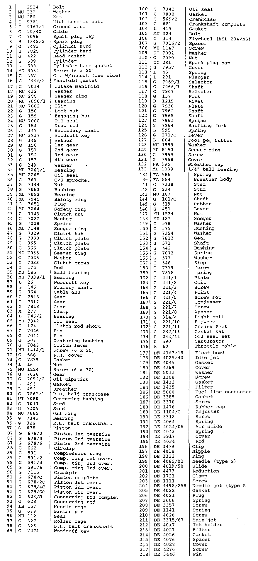 G G2-US, R Guzzi Robin-US, B Blazer-US ENGINE PARTS .