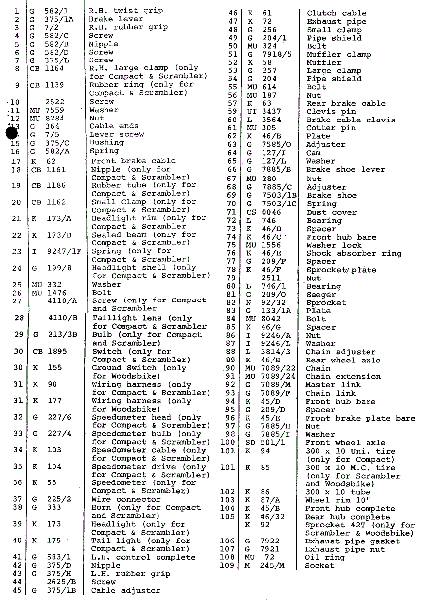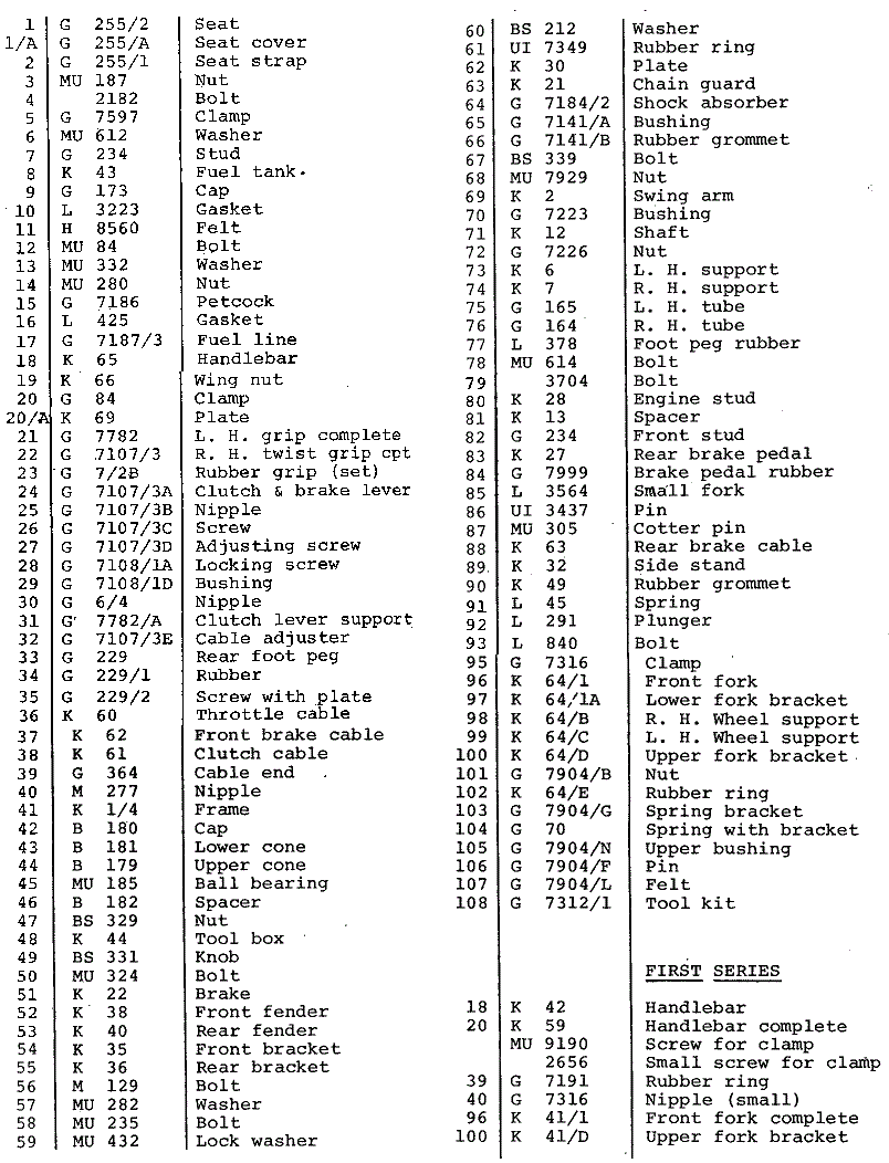 1. G ’77-80 Benelli G2-US, ’77-80 Guzzi G2-US, ’70,’80 #’s
