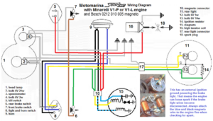 Solex Wiring: The 1970’s and earlier Solex 3800 had only one wire outside of the engine, going to the tail light. Instead of wires, the head light and switch had direct contacts. The ignition spark coil was internal, with the spark plug wire coming out of the magneto.