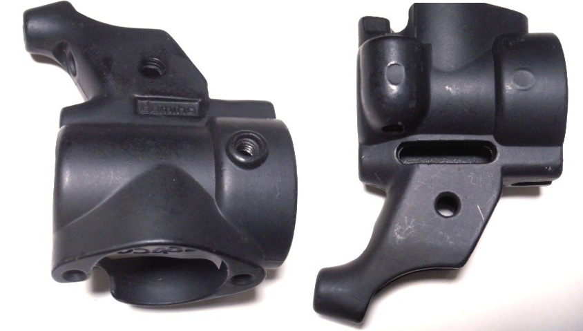 The V5 silver and V5g dark gray housings are exact replacements for D5. There are only two differences. 1) the brake cable hole is threaded-bottomless instead of bottomed-threadless. That means a 6mm adjuster must be added to the brake cable. That’s easy. 2) there is a small threaded hole on the bottom side for mounting a thumb button. It is unnoticeable.